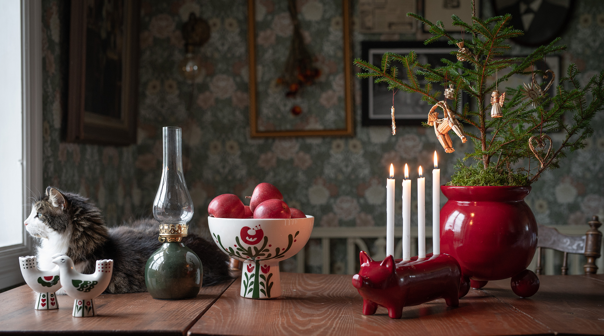 Helheten präglas av värme, gemenskap och minnen som knyter samman generationer. Detaljer som dventsljusstakar, stjärnor, kransar och tomtar skapar en ombonad känsla och