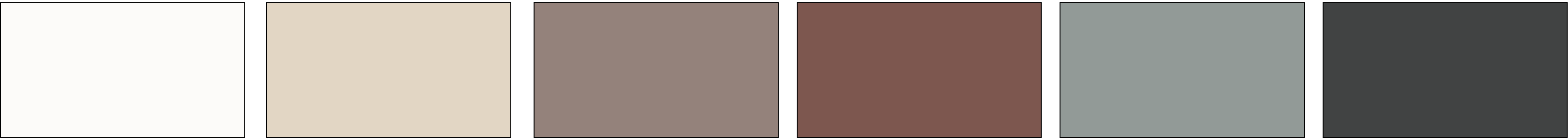 Färgpaletten är naturlig och lugn med vitt, beige, grått och andra jordnära toner. Svart kan användas för att skapa kontrast.